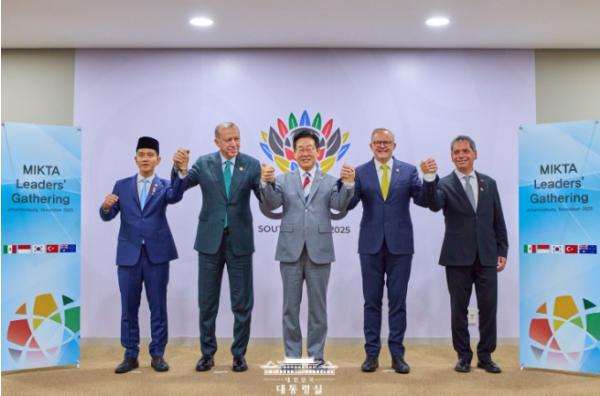 주요 20개국(G20) 정상회의 참석을 위해 남아프리카공화국을 방문한 이재명 대통령은22일(현지시간) 오후 우리나라, 멕시코, 인도네시아, 튀르키예, 호주 5개국으로 구성된 믹타(MIKTA) 회원국 정상들과 회동했다.